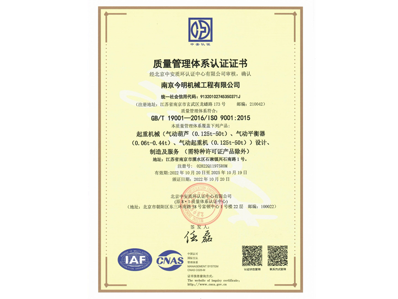 南京今明機械工程有限公司成立于一九九三年,歷經(jīng)二十多年磨練,沉淀了一批跟隨企業(yè)共同成長,技藝超凡、資深的高級工程師、技師、以及熟練的技術(shù)工人。企業(yè)的歷練和人才的智慧,鑄造出企業(yè)的核心競爭力。十年磨一劍。本著技術(shù)興業(yè),多年來,企業(yè)致力于氣動起重產(chǎn)品的研發(fā)與生產(chǎn)。在國內(nèi)氣動起重裝備領(lǐng)域具有良好的聲譽。并積極地與國家起重運輸機械質(zhì)量監(jiān)督檢驗中心、北京起重運輸機械設(shè)計研究院、江蘇省科技廳、南航等高校和科研單位緊密合作,與國外知名企業(yè)建立戰(zhàn)略合作伙伴關(guān)系,廣泛吸收國內(nèi)外新技術(shù)經(jīng)驗,力求趕超國際先進氣動起重裝備的技術(shù),打造國內(nèi)氣動起重裝備行業(yè)新軍。目前,企業(yè)已開發(fā)五大系列近百個品種的產(chǎn)品,覆蓋了化工、汽車、機械、冶金、礦山等二十多個行業(yè),并在全國三十多個省份擁有客戶。企業(yè)堅持用心做好每個環(huán)節(jié),精心打造讓客戶滿意的產(chǎn)品,力求...瀏覽更多 +